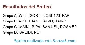 Lista de participantes: PC, WILL, SORTI, AGT, BREIDI, MAIKI, JOSE123, PAPI, PIPA, JUAN, SAMUEL, JAIRO, ROSMER, CALVO.