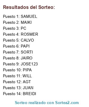 Resultados del sorteo:
