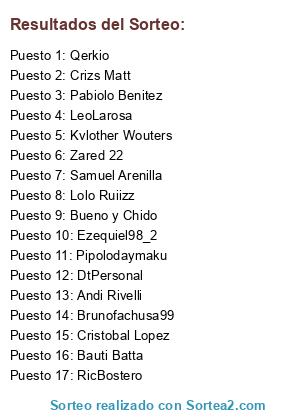 Lista de participantes: Pipolodaymaku, LeoLarosa, Bauti Batta, Pabiolo Benitez, Ezequiel98_2, Cristobal Lopez, Lolo Ruiizz, Bueno y Chido, Crizs Matt, Kvlother Wouters, DtPersonal, Brunofachusa99, RicBostero, Andi Rivelli, Samuel Arenilla, Zared 22, Qerkio.