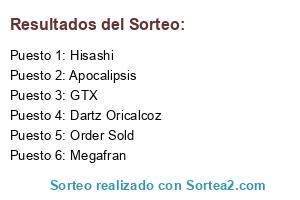 Lista de participantes: Hisashi, Order Sold, Megafran, Apocalipsis, GTX, Dartz Oricalcoz.
