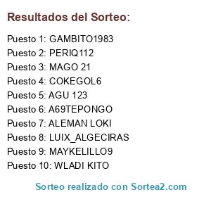 Lista de participantes: MAGO 21, LUIX_ALGECIRAS, MAYKELILLO9, ALEMAN LOKI, A69TEPONGO, AGU 123, PERIQ112, GAMBITO1983, WLADI KITO, COKEGOL6.