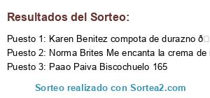 Lista de participantes: Hilda Fuz Las tortas de nuestros cumpleaños 646, Karen Arevalo Las mejores tortas de cumpleaños hace mi mamá. 687, Vero Cuquejo Lo más rico q nos preparaba d chicos eran sus buñuelos 😋😋.. 064, Brigida Bicky García Bizcochuelo y torta casera en cada cumpleaños, cremas caseras, flan y budín casero!! Todo dulce!! 576, Maria Aranda Mi mamá prepara una tarta invertida de manzana que es riquisima igual que su budin de pan con mucho caramelo !!! 014, Andrea Karina Franco Bollitos dulces y medialunas casera únicas y riquísimas 389, Natalia González II Lo Mejor de mí me prepara bollos 013, Gisela Tamara Zapaia Nada mas rico que las Masitas caseras💗 Bollos, Pasta frola que hace mi mamá riquísimas.., Liliana Diaz Me encantan las tortas fritas q hace mi mamá .036, Yesy Llanos Mi mamá me prepara unas ricas torta de chocolate 549, Mia Gonzalez Lo más dulce que prepara mi mamá, son sus deliciosos *Pan cuca*, Karina Fernandez El pastel de manzana más rico lo prepara mi mamá y pan dulce con membrillo .... 802, Itaty Garcia Mí mamá me nos prepará bollitos que son unas delicias593, Betty Vargas Mi mamá hace todo muy rico pero los arrollados de membrillo y batata . Son su especialidad 644, Rocio Valenzuela Lo más dulce que prepara mamá Pastafrola y Pan dulce relleno de membrillo 397, Alicia Esponda Mi mamá me solía preparar ricos bizcochuelos,y budín de pan.alicia 456, Brasil A Tus Pies Mi mamá hace tortas riquísimas. 184, Patricia Piris Mi mamá biscochuelo y mi abu QED preparaba unas masa morra riquísimas.Patricia 094, Mary Insua Mi mamá me solía preparar la torta de banana con nueces, ahora con sus 96 añitos soy yo quien la prepara!!! Graciasss!!! Feliz día a tdas las Mamis!!, Maria Cecilia Allende Mi mamá que en paz descanse me hacía las tortas más ricas, Silvia Miriam Herrera Mi mami me hacia los mejores budin de pan. 101, Noemi Antonia Romero Me encanta las pastafrolas y pan dulces que mi mamá prepara aún hoy. 549, Paula Campos Lo mejor son sus tortas invertidas de manzana 💖, Alicia Lopez Yo cuando tenia 5 Anitos mi mama falleció pero me gustaría ganar para compartir con mis hermosos amores 766, Nancy Mantau mi mama no nos hacia postres éramos muy pobres, ahora k somos grandes y se puede hace pasta frola Nanci 811, Angeles Mariie Pionomo casero con dulce de leche y con una capacde azucar ... mmmm riquísimo , mi mama amaba la cocina y yo heredé esa pasión!! 244, Laura Aguilera Los pastelitos de hojaldre q hace mi mamá,no los hace nadie!!! Y estira la masa con una botella de vidrio!!!! Genia! Genia! Genia!!, Gloria Florindo Mi mamá hacía crema casera de maizena. Ahora muy entrada en edad los postres se los preparo yo ❤️🥰, E Maru Doval Mi mama lo mas dulce que me.puede preparar que me lo hizo hce unos dias es la crema casera con maizena y azucar quemada, ojala me gane la torta asi festejamos nuestro dia juntas y mi cumple que es el 17 Ana Beatriz Silva, Claudia Halty Mamá prepara biscochuelo con relleno de crema y duraznos. Riquísima. Claudia 523., Saenz Coty Las tortas son riquísimas!!196, Pame Gruber De todo, tortas, panqueques,flan, pastelitos... Ella nos mima mucho, siempre nos espera con algo Monica Wolemberg... Pame Gruber075, Liliana Beatriz Galarza Tortas caseras hecho todo a mano sin batidora. 876, Noe Aguirre Uh acá perdí... mi mamá no cocina nada sino que compra o espera mi visita para q cocine 😉... encantada lo hago... ella es mi dulce compañía... mi nro 888, Liliana Roble Todo lo q me hace tiene las DULZURAS DE SUS MANOS 542..., Gladis Herrera Ya no tengo mi mami..pero lo mas rico era su bizcochuelo casero de limón 954, Nestor Toledo Lo que siempre me hizo mamá y creo que es única la crema de naranja..gracias, Ines Barrios Lo más dulce que nos preparaba mamá era el arrollado de dulce de leche caserito, ahora, una vez que crecí, yo soy la que le preparado cosas dulces a ella ❤, Carlos Alberto Lezcano Me gusta todos los manjares que elaboran diariamente además de la atención del personal 146, María Del Rosario Gamarra Gutiérrez Nunca me hizo nada dulce pero siempre me compró de todo dulce 😁 477, Silvina Aguirre Lo más rico que mamá me prepara es el arroz con leche❤💕🥰, Caro Kotur 244, mi mamá me preparaba la crema de maizena y hoy les preparo a mi hijos, Pancha González A mi mamá ya no la tengo, ella nos hacía crema pastelera casera con cáscara de naranja quemada y yema batida con azúcar implacable,riquísimo!!! 598, Luz Marina Cadiz tarta de manzana invertida con canela. soy luz 733, Marta Chavez biscochuelo y relleno de crema y chantilli 731, Grisell Fernandez Crema catalana riquísima 🍮 600, Orlando Rafael L Lopez Todo lo q preparaba mama era lo mas dulse, Cin Stuber Crema catalana 763, Correa Norma Crema catalana 394, Sandra Fernandez Crema catalana. 724, Silvy Ferrau Tortas y tartas nos hace siempre mi mamá decorados con azúcar impalpable...😋, Marta Vazquez Yo espero que gane la torta Noe así compartimos 109, Rosalia Elizabeth Meira Lo mejor que hacia mi mamá era la crema de leche con caramelo de azúcar 868, Gaby Piriz No la tengo más a mi mamá pero lo más rico q preparaba era la crema casera y el arroz con leche.., Mabel Pooter Mi mamá falleció cuando tenia 6 años 269, Paola Vanesa Wionczak 656 lo más rico es la pancuca ...nadie la supera es riquísimo mí preferido, Cynthia Baez Lo mas rico que hace mi mamá es flan casero y budin de pan ., Lilian Mariela Lo mejor que me hace mama(porque fue sólo una vez,es crema pastelera)no cocina nada dulce😥, Natalia Areco Lo mejor de mi mamá es él lemon pai 😋 335, Claudia Maria Galarza sopa paraguaya la mejor 920, Romina Gruber Mi mama Monica Wolemberg lo más dulce q hace son las tartas de frutillas y las pastafrola Romina Gruber 969, Agustina Silva Martínez Mariela R. Martínez a mi me gustan las cremas catalanas! Lo único dulce que sí me gusta jajaja, Sol Marcovich ahora no prepara n