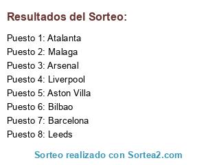 Lista de participantes: Liverpool, Malaga, Arsenal, Barcelona, Atalanta, Leeds, Bilbao, Aston Villa.