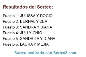 Lista de participantes: JULISSA Y ROCIO, SANDRA Y DIANA, BERNAL Y ZEA, LAURA Y MEJIA, JULI Y CHIO, SANDRITA Y DIANA.