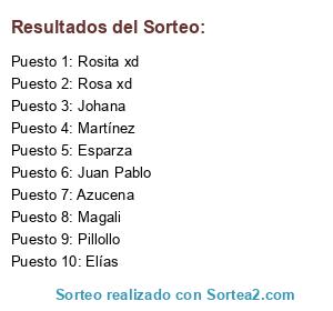 Lista de participantes: Azucena, Azucena 2, Magali, Magali 2, Rosa xd, Rosa xd 2, Johana, Johana 2, Juan Pablo, Juan Pablo 2.
