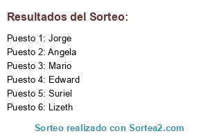 Lista de participantes: Angela, Edward, Jorge, Mario, Lizeth, Suriel.