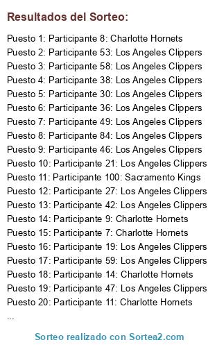 - Puesto 1: Participante 8: Charlotte Hornets