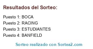 Lista de participantes: BOCA, ESTUDIANTES, BANFIELD, RACING.