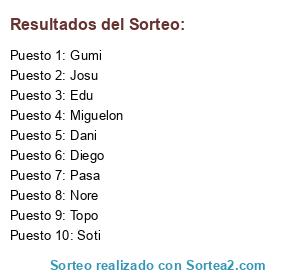 Lista de participantes: Topo, Soti, Josu, Diego, Miguelon, Nore, Gumi, Edu, Dani, Pasa.