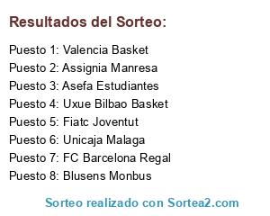 Lista de participantes: Unicaja Malaga, FC Barcelona Regal, Asefa Estudiantes, Valencia Basket, Fiatc Joventut, Uxue Bilbao Basket, Assignia Manresa, Blusens Monbus.