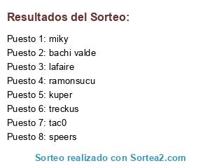 Lista de participantes: ramonsucu, miky, speers, tac0, kuper, lafaire, bachi valde, treckus.
