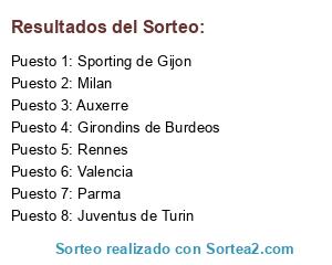Lista de participantes: Valencia, Juventus de Turin, Girondins de Burdeos, Milan, Parma, Auxerre, Sporting de Gijon, Rennes.