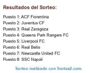 Lista de participantes: SSC Napoli, Juventus CF, ACF Fiorentina, Real Zaragoza, Real Betis, Queens Park Rangers FC, Newcastle United FC, Liverpool FC.