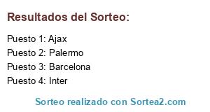 Lista de participantes: Palermo, Inter, Ajax, Barcelona.
