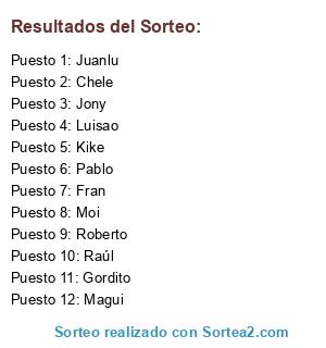 Lista de participantes: Pablo, Juanlu, Gordito, Chele, Moi, Roberto, Kike, Fran, Raúl, Luisao, Jony, Magui.