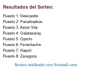 Lista de participantes: Napoli, Aston Vila, Fenerbache, Galatasaray, Zaragoza, Oporto, Newcastle, Panatinaikos..