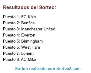Lista de participantes: AC Milán, Manchester United, Everton, Benfica, Lorient, Birmingham, FC Köln, West Ham.