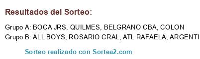 Lista de participantes: ATL RAFAELA, QUILMES, COLON, ALL BOYS, BOCA JRS, BELGRANO CBA, ROSARIO CRAL, ARGENTINOS JRS.