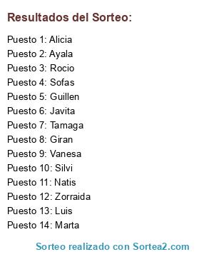Resultados del sorteo: