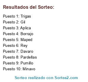 Lista de participantes: Davaro, Rey, Pumillo, Maped, Aplica, Pardellas, Gil, Minavo, Borrajo, Trigas.