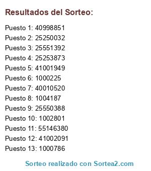 Resultados del sorteo: