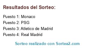 Lista de participantes: PSG, Atletico de Madrid, Monaco, Real Madrid.
