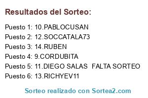 Lista de participantes: 9.CORDUBITA, 10.PABLOCUSAN, 11.DIEGO SALAS FALTA SORTEO, 12.SOCCATALA73, 13.RICHYEV11, 14.RUBEN.