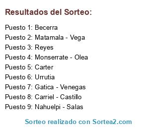 Resultados del sorteo: