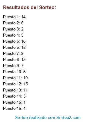 Lista de participantes: 1, 2, 3, 4, 5, 6, 7, 8, 9, 10, 11, 12, 13, 14, 15, 16.