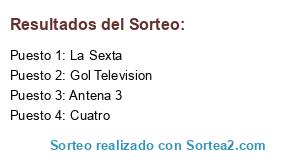 Lista de participantes: La Sexta, Canal +, Cuatro, Antena 3, Gol Television, Canal + Liga.