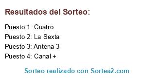Lista de participantes: La Sexta, Canal +, Cuatro, Antena 3, Gol Television, Canal + Liga.