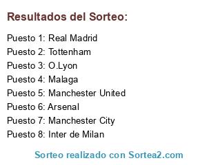 Lista de participantes: Manchester City, Arsenal, Inter de Milan, Manchester United, Tottenham, Real Madrid, O.Lyon, Malaga.