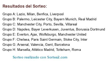 Lista de participantes: Chelsea, Real Madrid, Napoles, Barcelona, Bayern Munich, Manchester United, Paris Saint Germain, Borussia Dortmund, Juventus, Manchester City, Arsenal, Porto, Totteham, Sevilla, Atlético Madrid, Wolfsburgo, Liverpool, Milan, Ajax, Leicester City, Stoke City, Benfica, Bayer Leverkusen, Roma, Marsella, Valencia, Lazio, Gent, Villareal, Palermo, Everton, Inter.