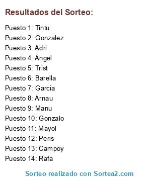 Resultados del sorteo: