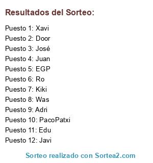 Lista de participantes: Xavi, Javi, Juan, Adri, EGP, Kiki, PacoPatxi, Edu, Ro, Door, José, Was.
