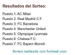 Lista de participantes: Chelsea F.C., Manchester United, Olympique Lyonnais, AC Milan, FC Bayern Munich, FC Barcelona, Real Madrid C.F..