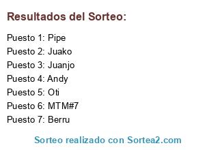 Lista de participantes: Pipe, MTM#7, Juanjo, Andy, Oti, Berru, Juako.