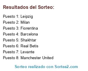Lista de participantes: Levante, Shakhtar, Manchester United, Leipzig, Fiorentina, Real Betis, Barcelona, Milan.
