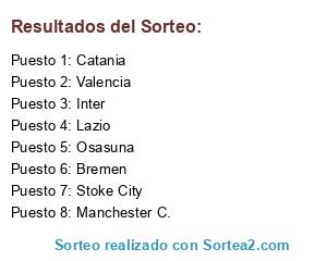 Lista de participantes: Catania, Stoke City, Manchester C., Inter, Bremen, Osasuna, Lazio, Valencia.