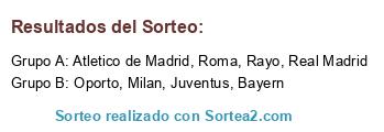 Lista de participantes: Atletico de Madrid, Milan, Roma, Rayo, Real Madrid, Bayern, Juventus, Oporto.