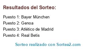 Lista de participantes: Genoa, Bayer München, Atlético de Madrid, Real Betis.