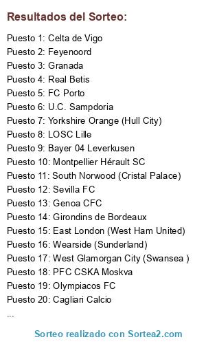 Lista de participantes: South Wales (Cardiff), South Norwood (Cristal Palace), Yorkshire Orange (Hull City), Norkfolk City (Norwich City), The Potteries (Stoke City), Wearside (Sunderland), West Glamorgan City (Swansea ), East London (West Ham United), SC Bastia, Girondins de Bordeaux, LOSC Lille, Olympique Lyonnais, Montpellier Hérault SC, OGC Nice, AS Saint-Ettiene, Atalanta B.C., Bologna FC, Cagliari Calcio, Genoa CFC, U.C. Sampdoria, Torino F.C., Udinese Calcio, Verona, Ajax, Feyenoord, SC Heerenveen, PSV, FC Twente, Vitesse, Real Betis, Celta de Vigo, Granada, Malaga, Real Sociedad, Sevilla FC, S.C. Braga, FC Porto, Esportiva (Sporting Lisboa), F.C. Copenhagen, Bayer 04 Leverkusen, Olympiacos FC, PFC CSKA Moskva, Celtic FC, Shakhtar Donetsk.