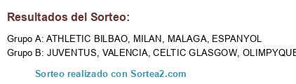 Lista de participantes: JUVENTUS, MALAGA, OLIMPYQUE MARSELLA, ATHLETIC BILBAO, ESPANYOL, VALENCIA, MILAN, CELTIC GLASGOW.