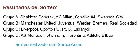 Resultados del sorteo: