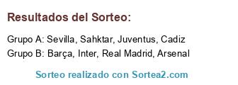 Lista de participantes: Inter, Juventus, Sevilla, Barça, Sahktar, Real Madrid, Cadiz, Arsenal.
