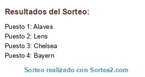 Lista de participantes: Bayern, Alaves, Chelsea, Lens.