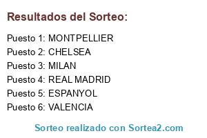 Lista de participantes: VALENCIA , CHELSEA, REAL MADRID, MONTPELLIER, ESPANYOL, MILAN.