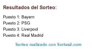 Lista de participantes: Real Madrid, Bayern, Liverpool, PSG.