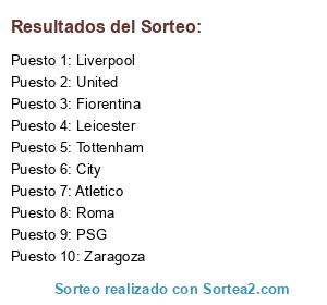 Lista de participantes: PSG, Leicester, Roma, City, Liverpool, Zaragoza, Atletico, Tottenham, Fiorentina, United.