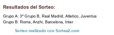 Lista de participantes: Anzhi, Real Madrid, Roma, Juventus, Barcelona, Atletico, Inter, 3º Grupo B.